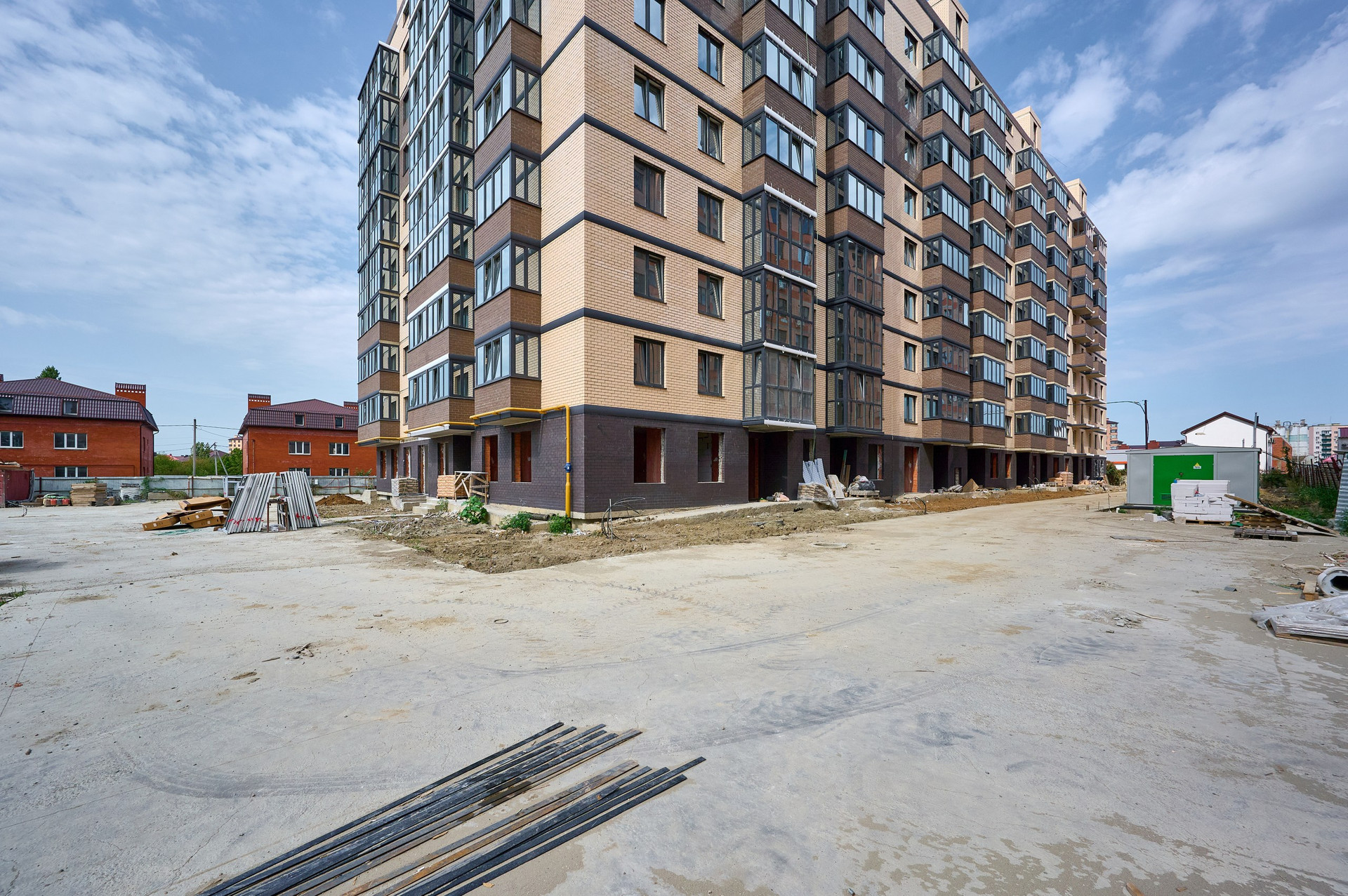 На первом этаже дома есть коммерческие помещения.