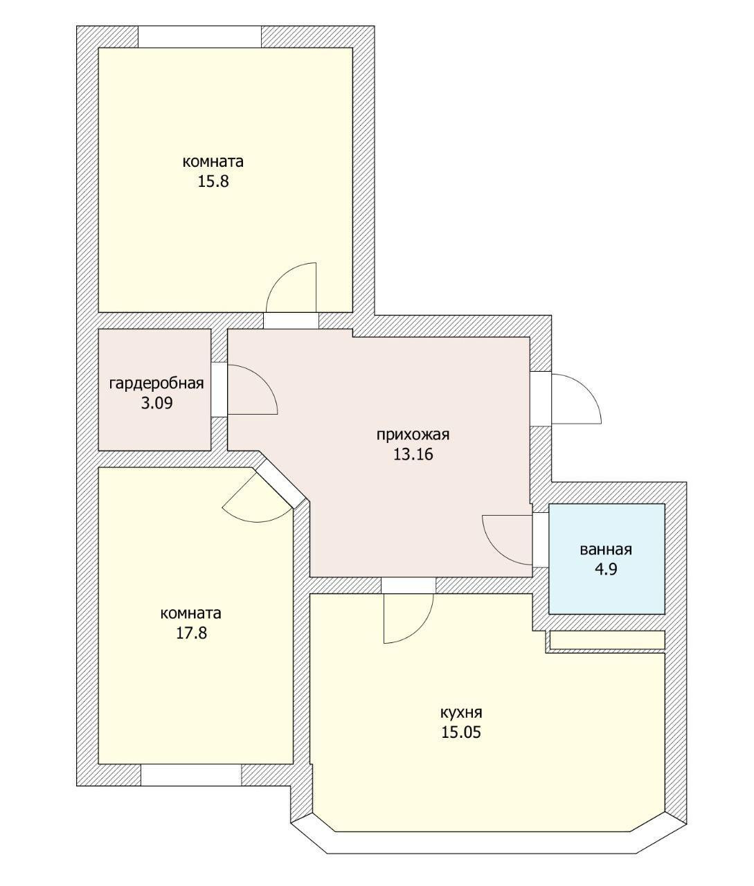 Отличная планировка на две стороны, с большой кухней-гостиной, двумя изолированными спальнями, просторным коридором, гардеробной, санузлом.