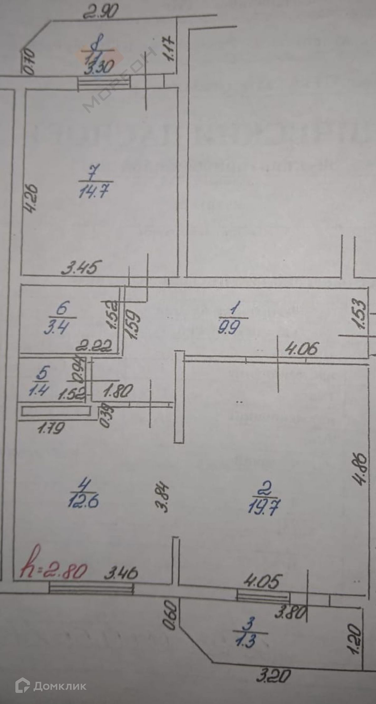 Высота потолков 2.8 м