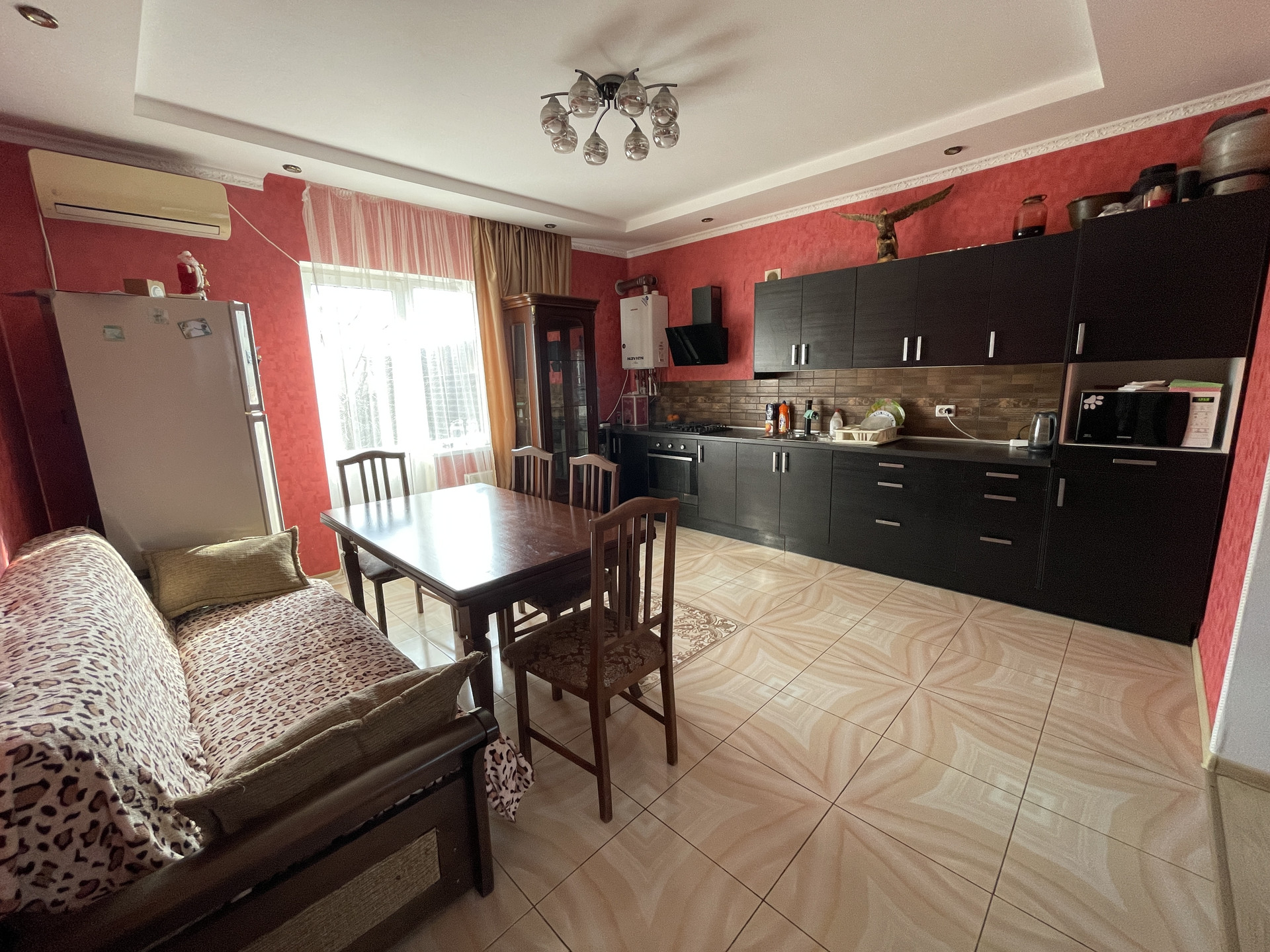 Собственник. 1 хозяин. Никто не прописан. Продаю дом с ремонтом, мебель оставляем частично по договоренности. В каждой комнате установлены Сплит системы. Два санузла. Большая кухня-гостиная. 2 просторных комнаты на втором этаже. Индивидуальное отопление.  Есть охрана (установлены датчики движения). Забор с кирпичными колоннами, ворота. С дома два выхода (с кухни выход на задний двор, где расположена беседка, с коридора выход на передний двор, где помещается три автомобиля). Во дворе плодовые деревья (груша, яблоня,слива,черешня,инжир). Все деревья несут плоды. Хорошие подъездные пути. Широкая улица. Остановка транспорта рядом. Отличное расположение вблизи от центральной части Краснодара. До города пешком 20 минут. Район с хорошо развитой инфраструктурой. В двух минутах супермаркеты Магнит, Пятерочка, магазины и пункты выдачи. Ипотека подходит.