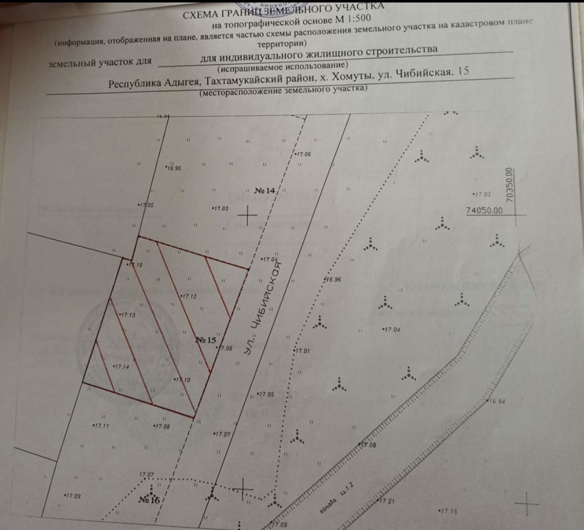 Земельный участок по адресу хутор Хомуты, район Мега Адыгея, ул. Чибийская, 15, категория земель "Земли населенных пунктов" для ИЖС. Все коммуникации рядом, район застраивается. Имеется межевой план,кадастровый паспорт,схема расположения.