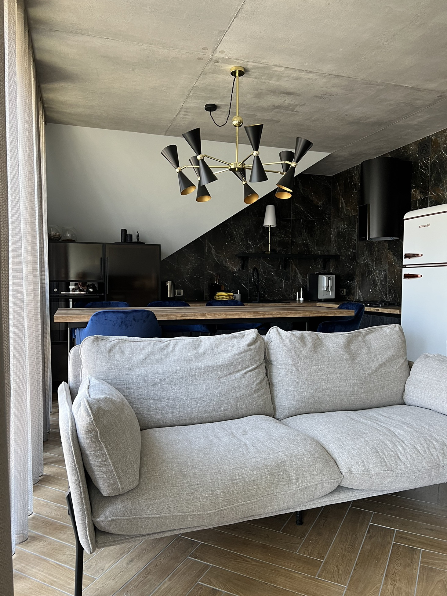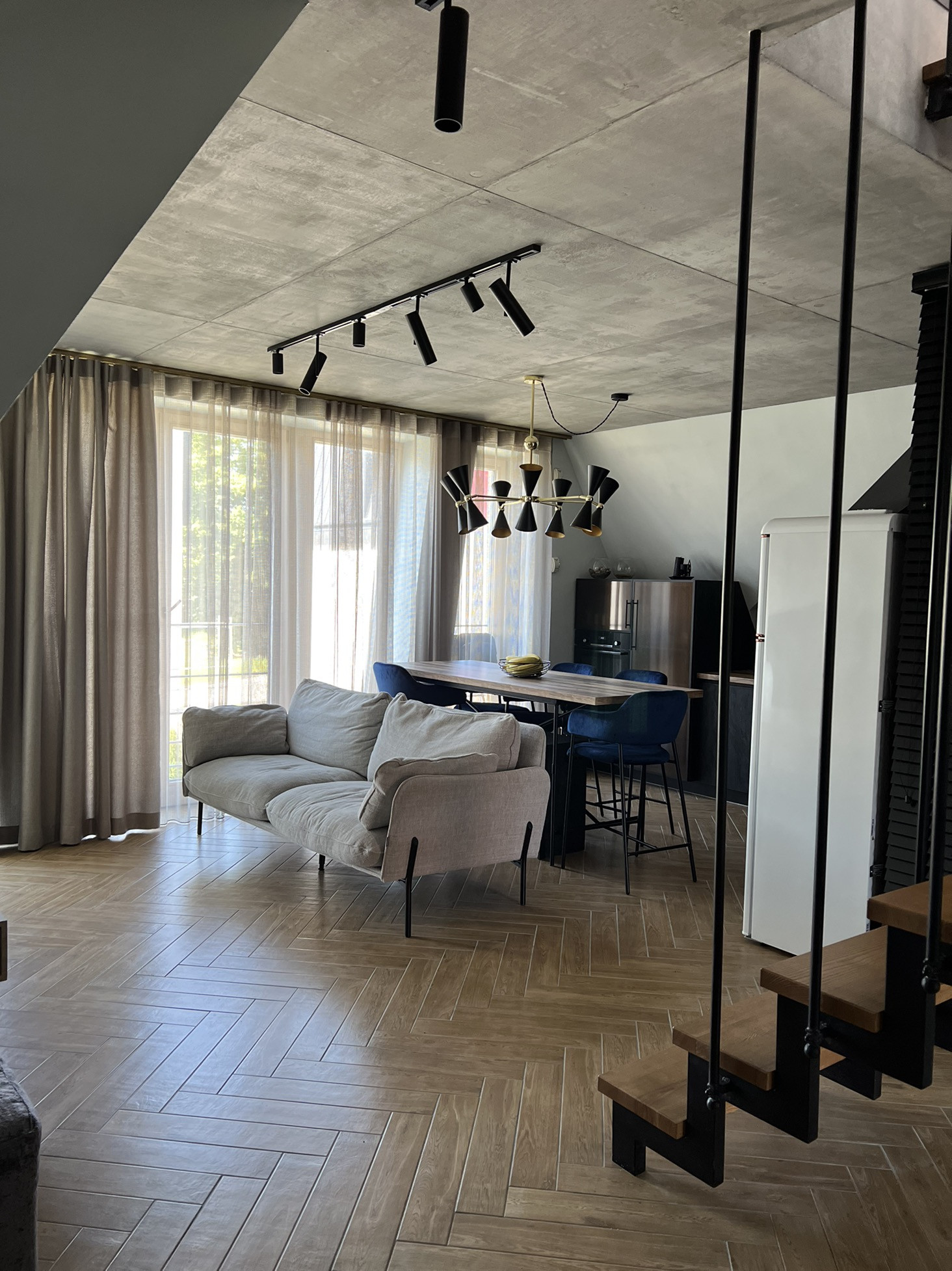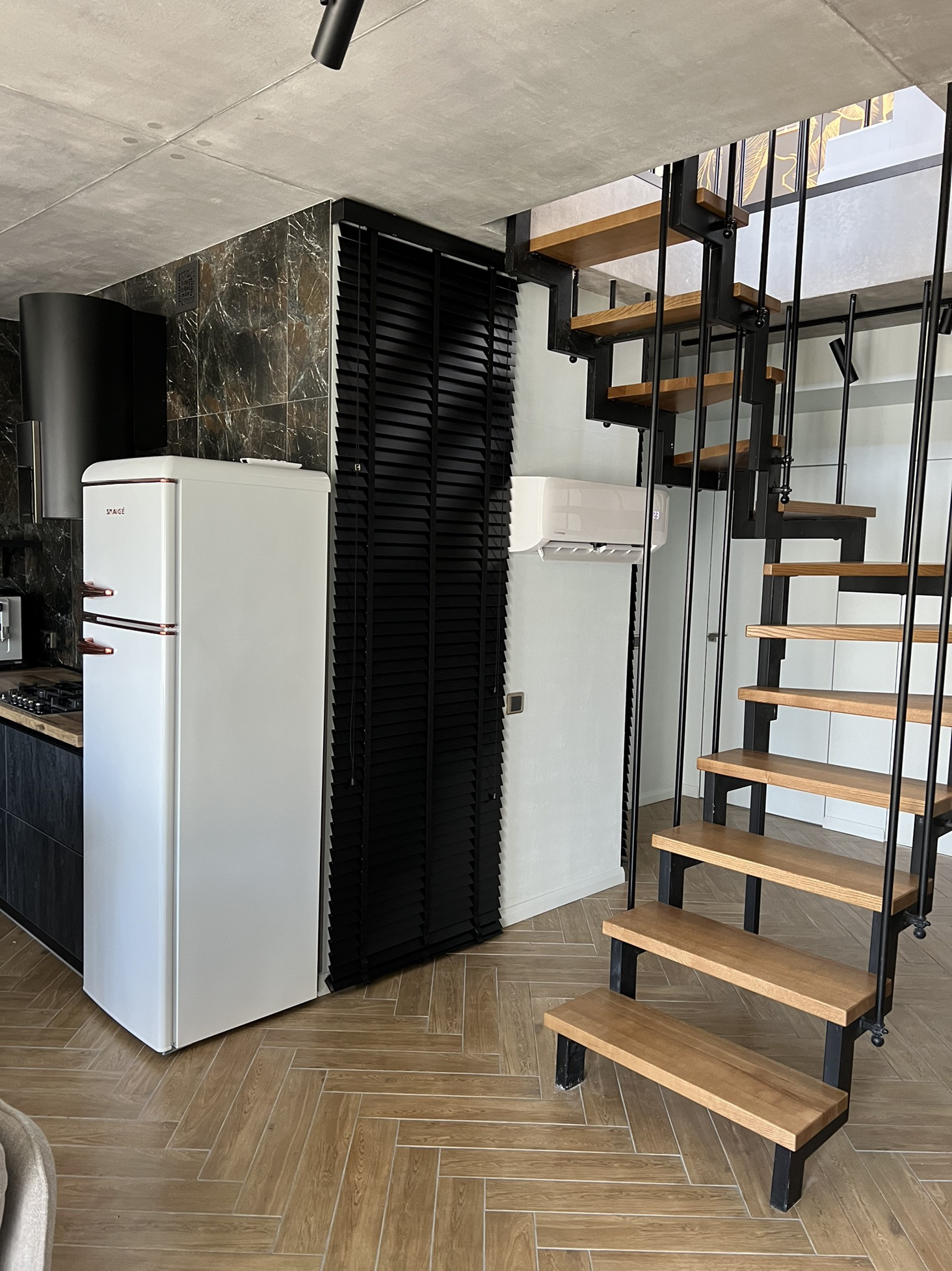Квартира 96,6 м2 , терраса 23 м2. Сделан дизайнерский ремонт из высококачественных материалов в стиле лофт. Два санузла, на первом этаже тёплые полы , на втором батареи. Два полотенцесушителя( один электрический). Отопление автономное. Установлено три кондиционера. Смонтирован дополнительный смягчитель воды , а также питьевой кран. Из Техники : телевизоры, духовой шкаф, посудомоечная машина, стиральная машина, сушильная машина, кофемашина, холодильник . Вся мебель и Техника остаётся !!!  Да, терраса безумно крутая !!!!!! Вообщем все вышеперечисленные аспекты мало кого оставят равнодушным ! Успейте стать , действительно , счастливым обладателем  ШИКАРНОГО жилья !!!