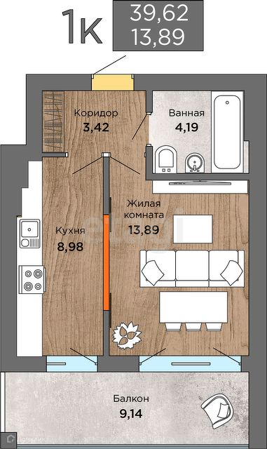 Продается ВИДОВАЯ 1-комнатная квартира в новом доме С РЕМОНТОМ И САНТЕХНИКОЙ!