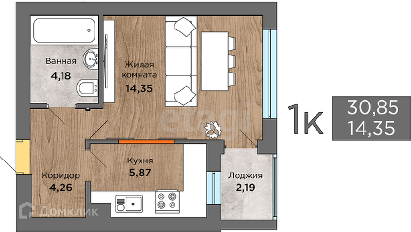 Общая площадь 31.4 м2
