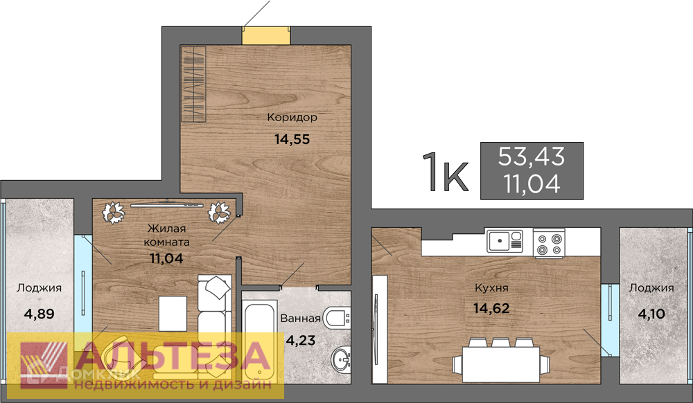 , Янтарный пгт, улица Балебина 13б, 1 комн., общ. пл. 54 кв.м., жил.пл. 11.04 кв.м., комнаты 11.04, кухня 14.62 кв.м., 2/4 этаж, окна двор, санузел совмещенный, 2 лоджии, без отделки, Номер лота: 4187845