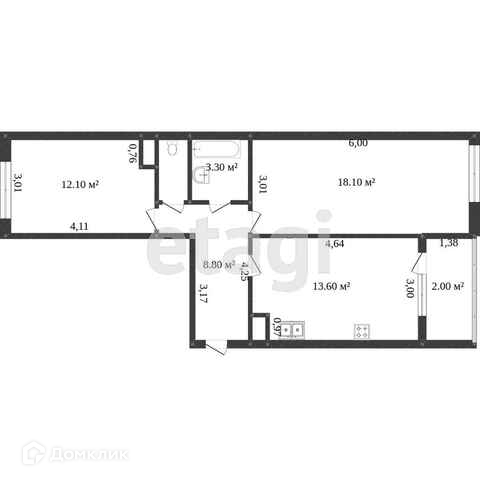 Общая площадь 50.3 м2