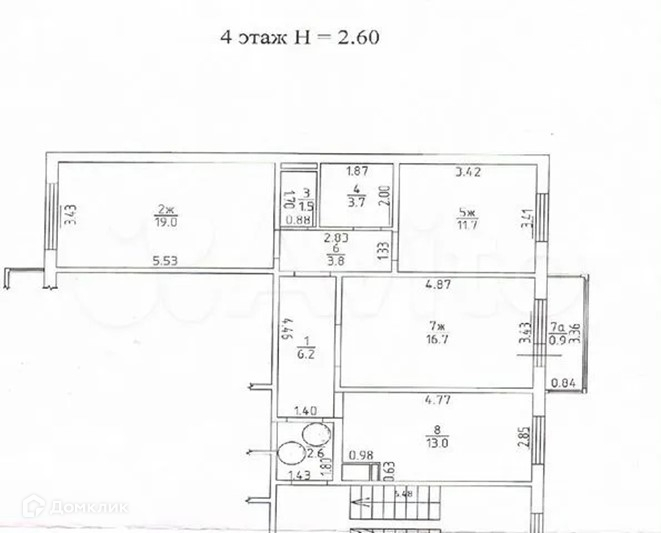 Изолированные комнаты: 19 кв.м., 16,7кв.м., 11,7кв.м., кухня 13 кв.м., раздельный с/у.