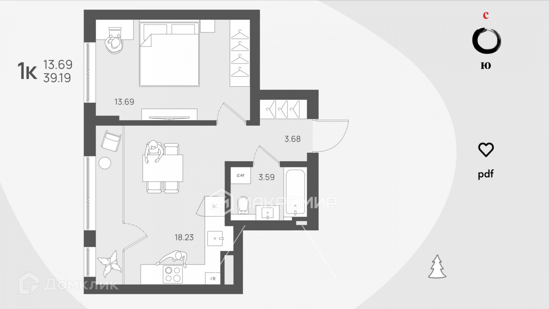 Общая площадь 39.19 м2
