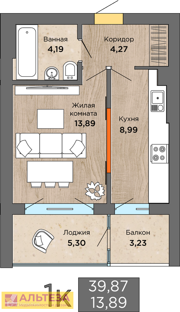 Балкон, лоджия 1 лоджия