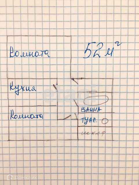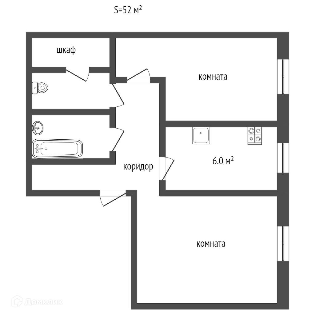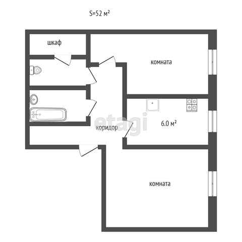Общая площадь 52 м2