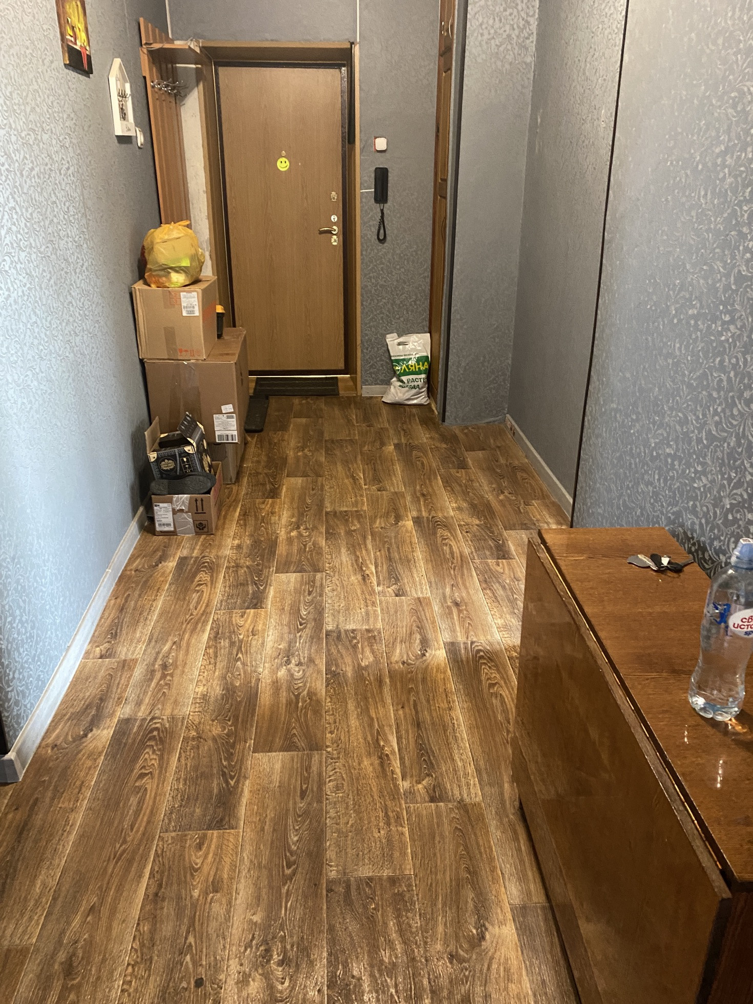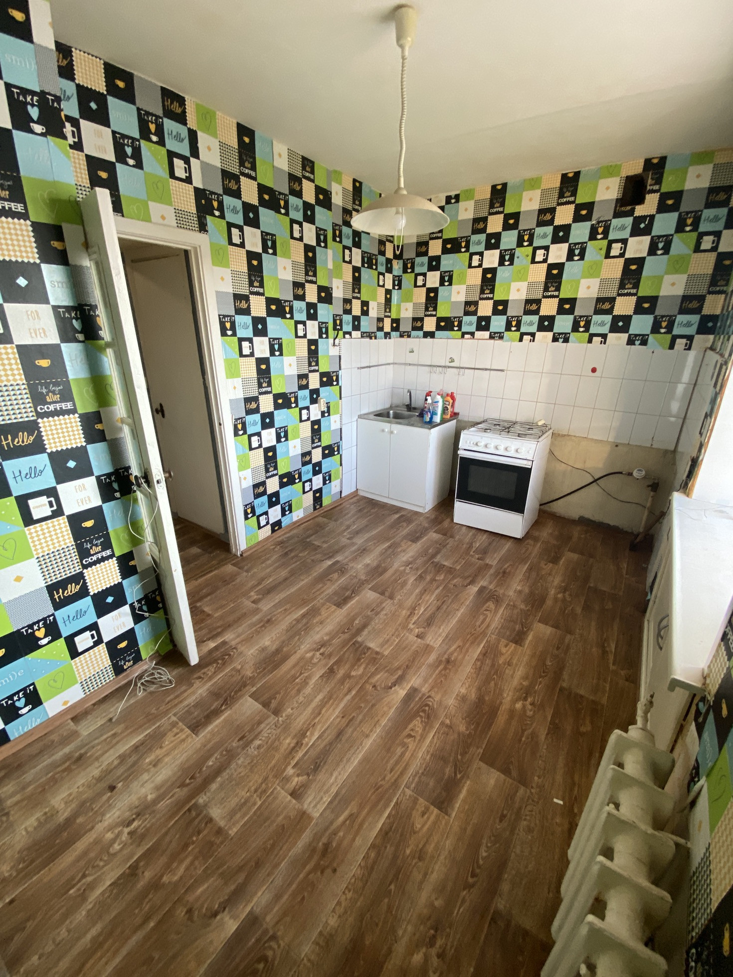 В квартире остаётся газовая плита, раковина ,стиральная машина, кроватка в детской.