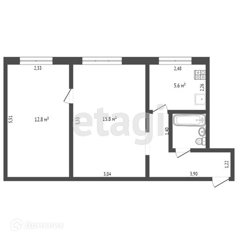 Общая площадь 44.3 м2
