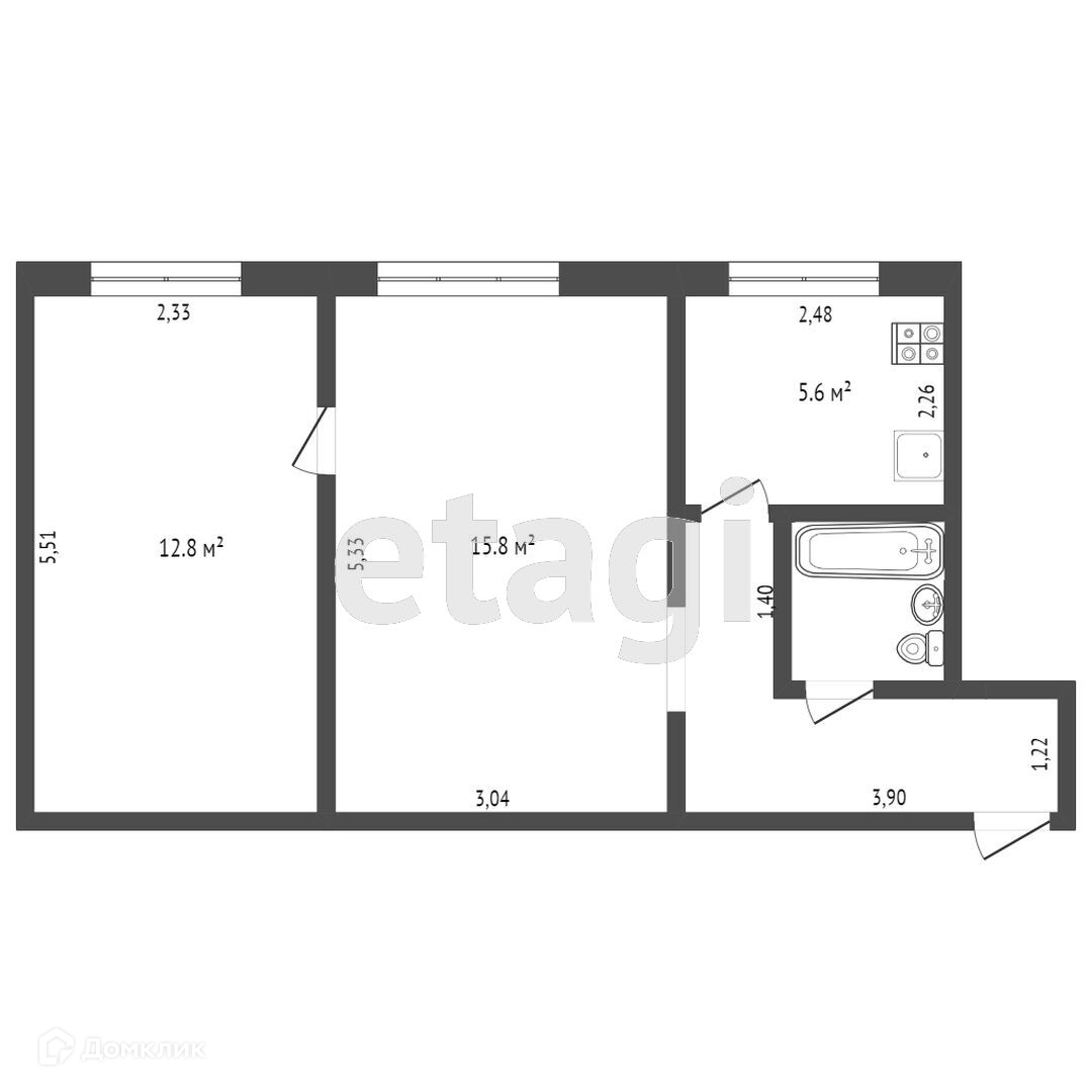 Общая площадь 44.3 м2