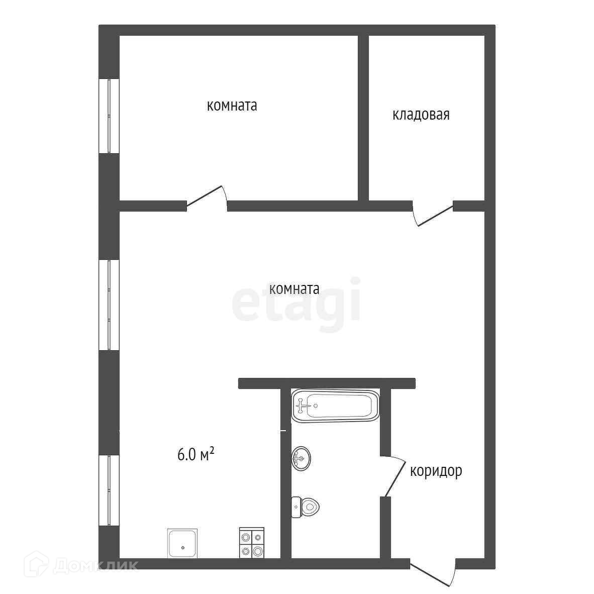 Общая площадь 42.1 м2