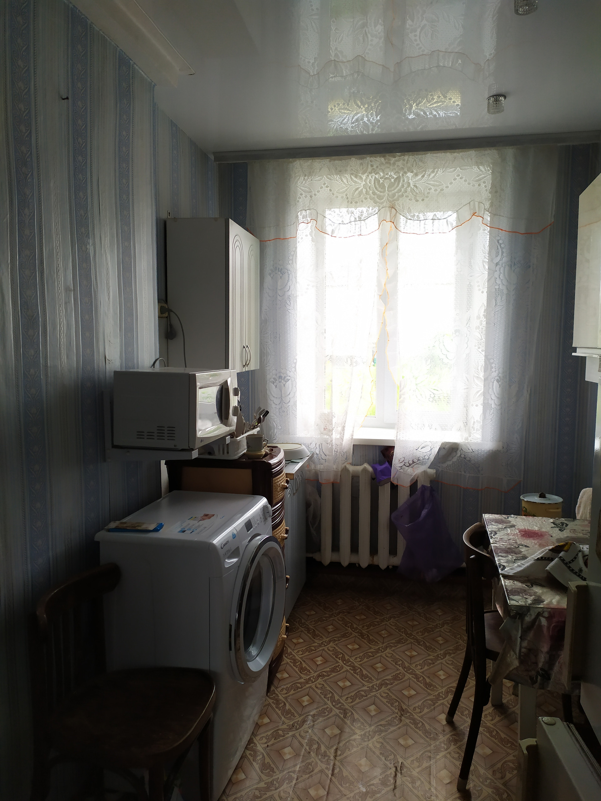 Во всей квартире установлены пластиковые окна, натяжные потолки(высота потолков 2,75 м). На кухне и в коридоре-линолеум. Входные двери: наружу - железная дверь, внутри- деревянная. В доме отремонтированы крыша, сами подъезды и подходы к ним. В квартире остается мебель, по договоренности бытовая техника. Адекватные соседи. Долгов и обременений нет. Чистая продажа от собственника.