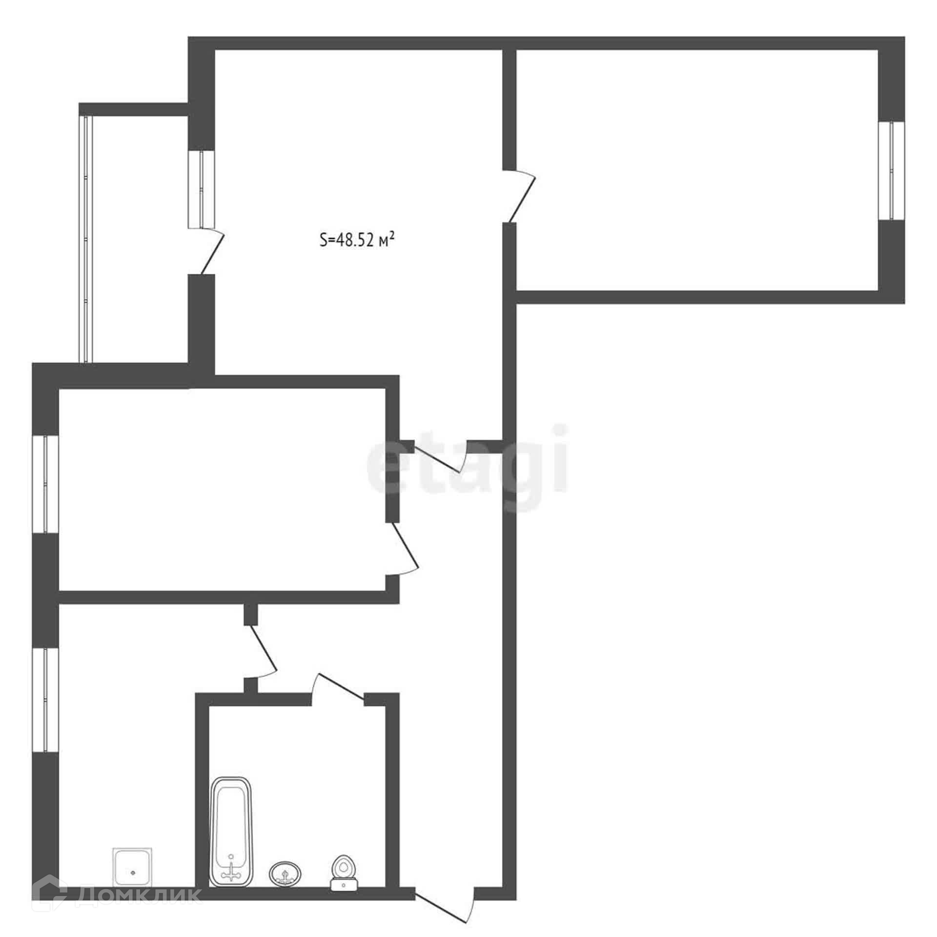 Общая площадь 48.52 м2