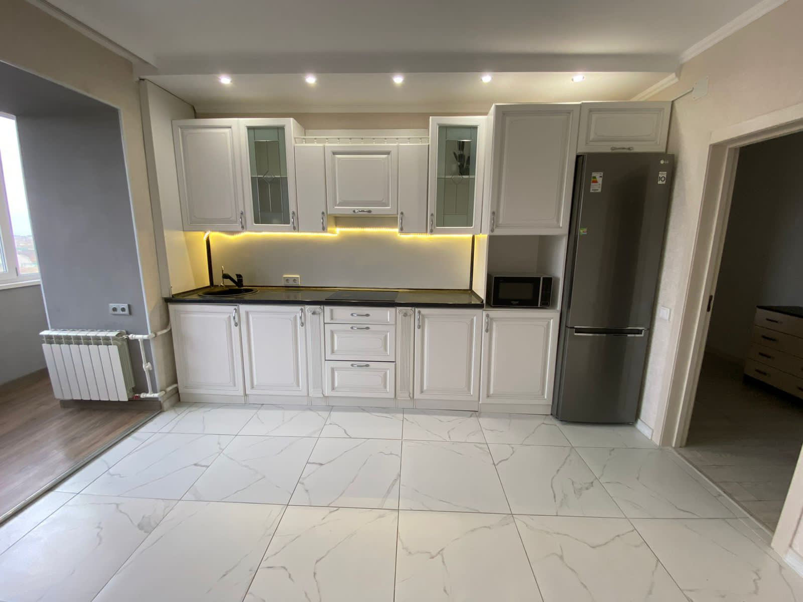 Очень просторная кухня, что не маловажно.