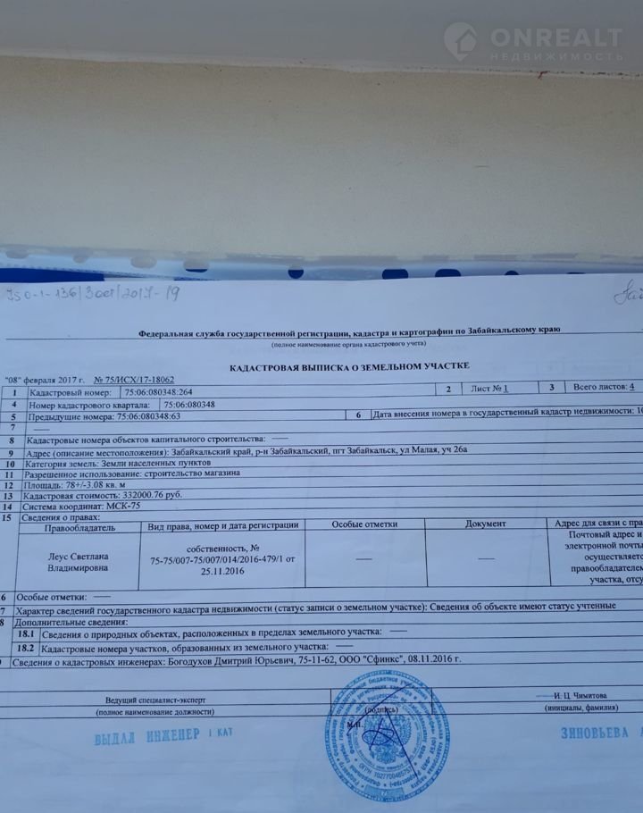 Стоимость недвижимости: