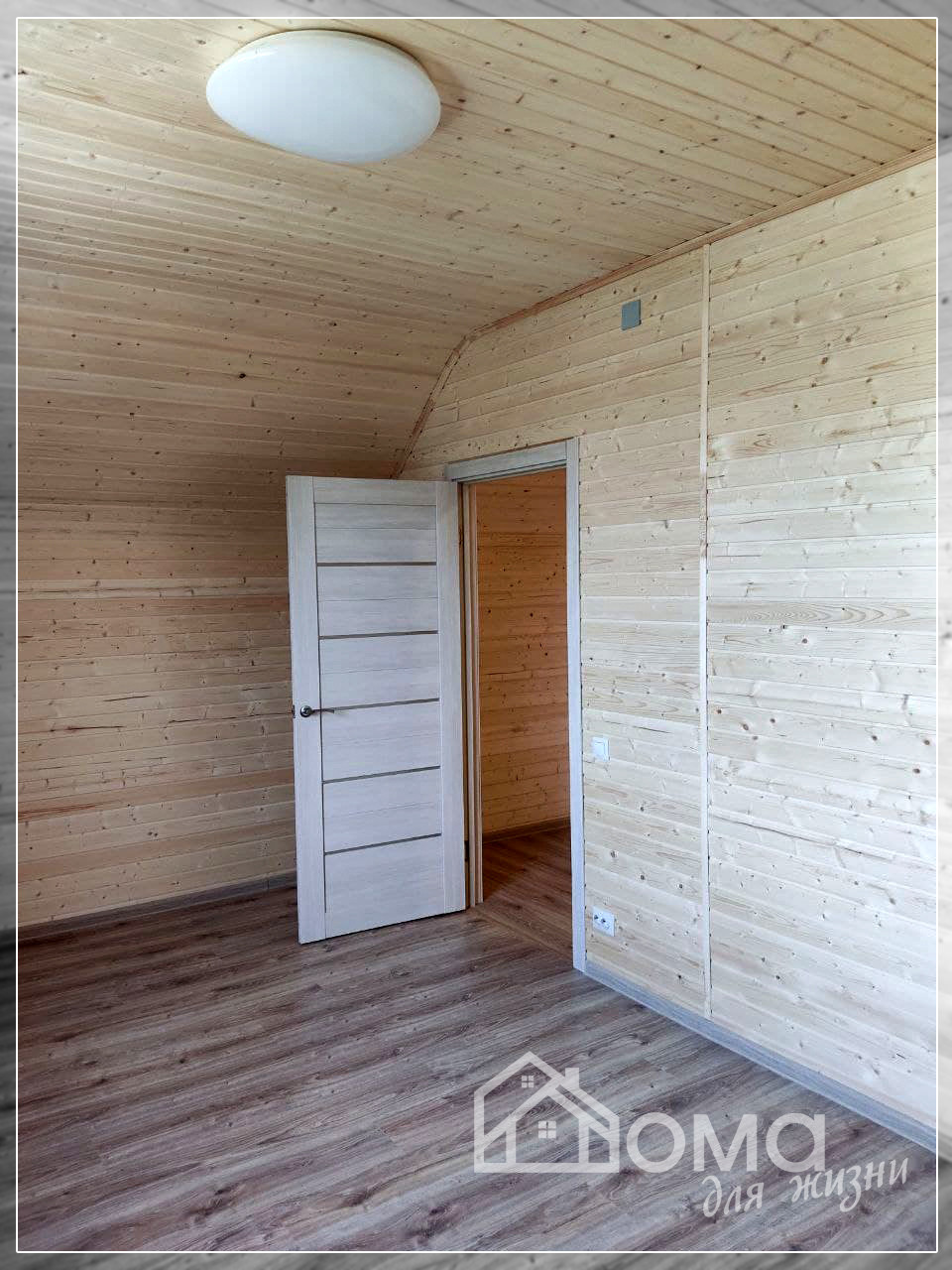 Стены отделаны деревянной вагонкой в натуральном цвете;