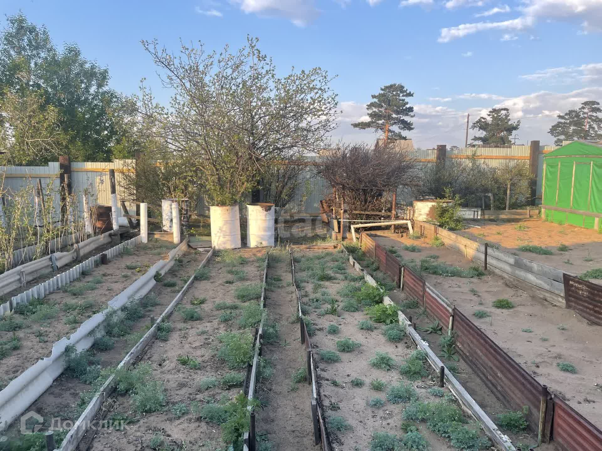 Большой огород, аккуратные грядки, две теплицы, имеется картофельное поле.