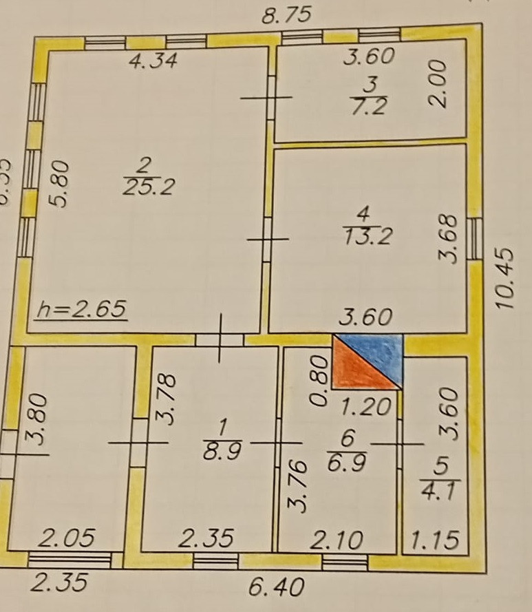 Общая площадь 65.5 м2