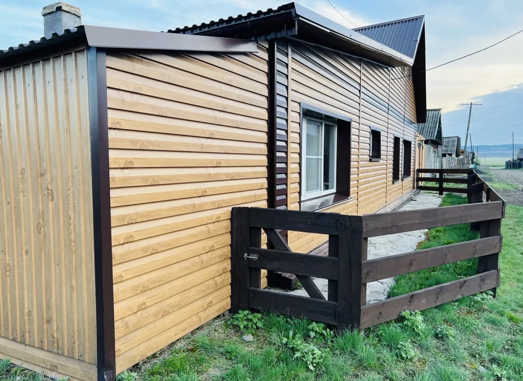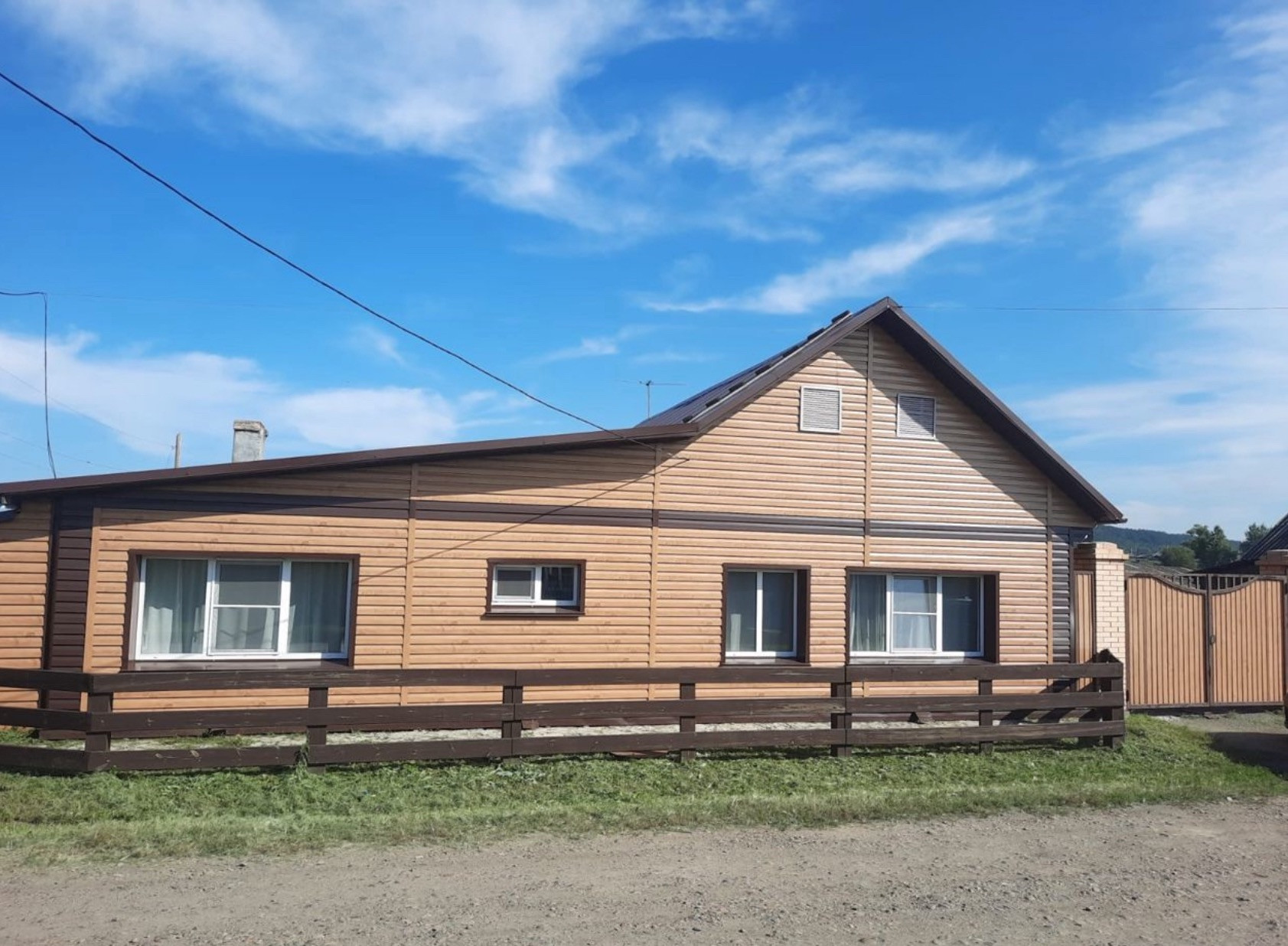 Обшит снаружи со всех сторон, новая кровля, скважина с дорогой системой очистки и умягчения воды. В 2022 уже проложили у дома магистраль центрального водоснабжения. Есть возможность подключиться. Септик двойной с системой дренажа. В доме 4 жилых комнаты: 2 спальни, большой (более 30 кв.м.) зал-гостинная и комната, которую мы оставляем новому владельцу для реализации своей фантазии по потребности: сделать отличный современный кабинет, возможно удобную ультрамодную гардеробную с новой системой хранения Титан-GS, быть может вторую детскую комнату, спальню или же жилую комнату для пожилого человека (бабушки или дедушки). Санузел с душем, раковиной, унитазом и новым ремонтом, имеется окно. 2 прихожие, большая кухня со встроенной новой кухней и всей техникой: духовой шкаф, микроволновка, вытяжка, 2 электрические конфорки и 2 газовые - газ установлен под мойкой, на случай отключения света). В кухне на стенах и на полу, а также на полу первой прихожей, расположенной у входа в дом, дорогая износостойкая и влагонепроницаемая плитка ПВХ. Натяжные потолки. Печное отопление и бойлерное (3 тены). Есть подполье и подвал для хранения урожая. Также имеется веранда. Вход в дом накрыт кровлей. Ограда выложена плиткой. Большая утепленная будка для собаки. Есть гараж на 2 машины. Потолки и ворота в гараже очень высокие - есть возможность загонять внедорожники и грузовики. Гостевой благоустроенный дом из листвяка с дизайнерским ремонтом (встроенная кухня, с/у, печь-камин, плитка на 4 конфорки (2 электрические и 2 газовые - газ установлен под мойкой, на случай отключения света), духовой шкаф, вытяжка, полностью обставлен (диван раскладной на 2 спальных места) подходит для круглогодичного проживания). Новая баня с теплыми полами, двумя баками воды, полком из листвяка,отделка полов и стен у печи плиткой, подача холодной воды через кран напрямую из скважины через фильтра, душ, все герметично, держит тепло несколько дней, новая обустроенная яма. Теплица Сота с двумя автоматическими форточками, стайка, цыплятник и курятник, сеновал, 3 скважины. Имеется задний двор и выход на ул. Пионерская, которая у реки, что при желании позволит иметь скот или птицу, которых можно выводить на выпас. Также имеется большая бочка, обустроенная под бассейн - имеется лестница с периллами, стоит на сваях, и при необходимости под дном можно легко оборудовать подогрев. Расположена рядом с баней. На сегодняшний день накрыта крышей и эксплуатируется как емкость для полива огорода. Для тех, кто не собирается разводить птицу и скот, есть возможность освободить половину участка от ненужных построек и построить гаражи, сделать полноценный задний двор с отдельными воротами из проулка на участок. Во дворе многолетний газон. Место под беседку, зону барбекю и бассейн. В баню заведена вода (кран подачи холодной воды напрямую со скважины). Электричество 3 фазы, 15 кВт. Дров на 2 зимы вперёд. Перед гаражом двор на 4 легковых авто. Перед домом имеются парковочные места: напротив дома и у въездных ворот. Система видеонаблюдения. Ремонт не требуется. есть все.