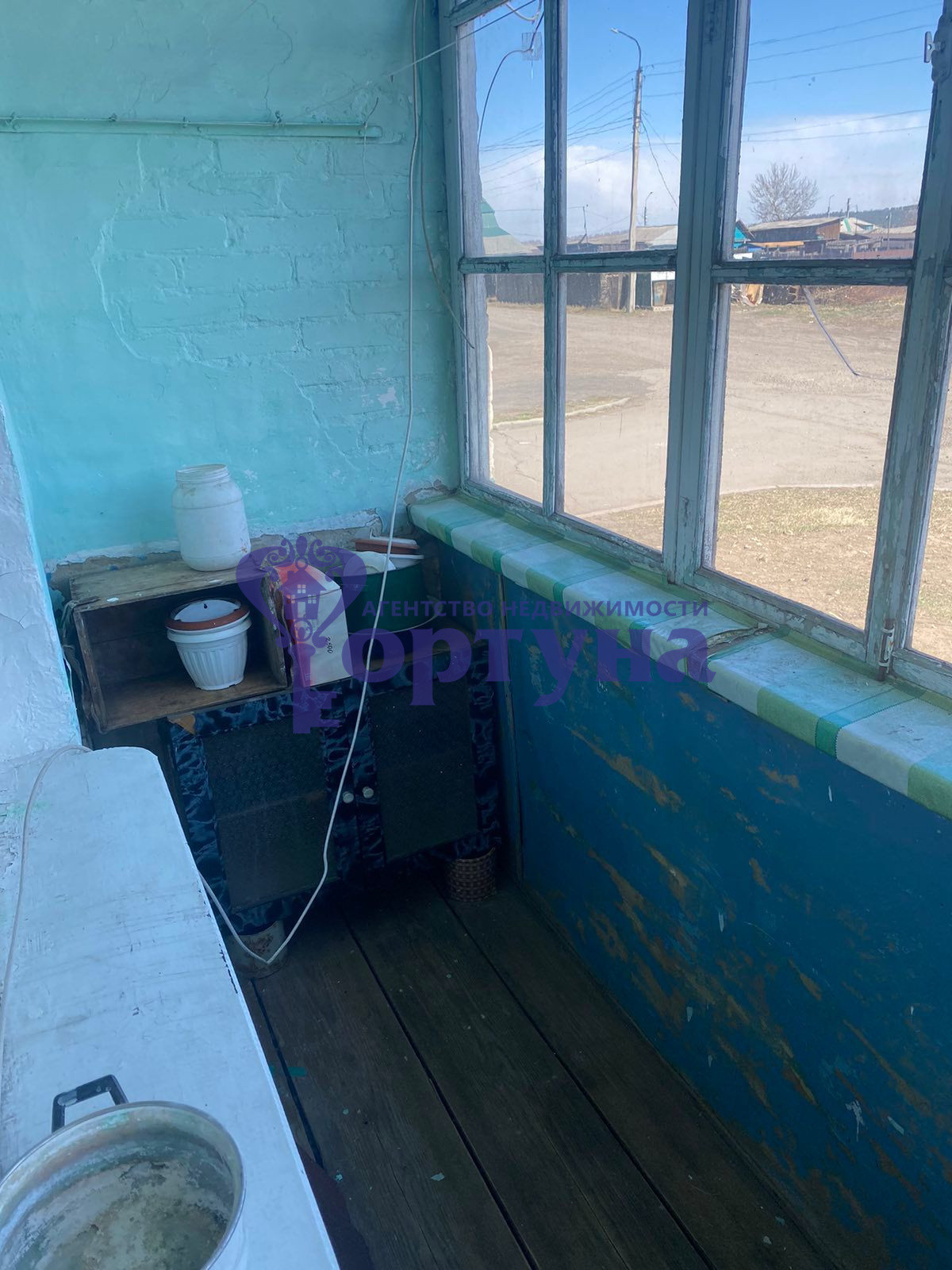 Балкон застеклен деревянными рамами.