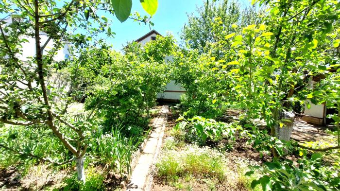 Продаётся дачный дом  в СНТ Приморье. Состояние хорошее, сырости нет, установлены стеклопакеты, просторные, светлые комнаты, смежные. С/у совмещённый, в доме, выгребная яма. Отопление печное. На участке 6 соток земли, правильной формы, огорожен каменным забором. Ухоженный сад  с плодовыми деревьями. Есть  хозпостройки, зона барбекю. Своя  скважина. Гараж. Растояние к морю 700 метров. Документы на землю РФ.   . Обычное состояние. Все удобства. Гараж. Фруктовые деревья.  Код объекта 3830.