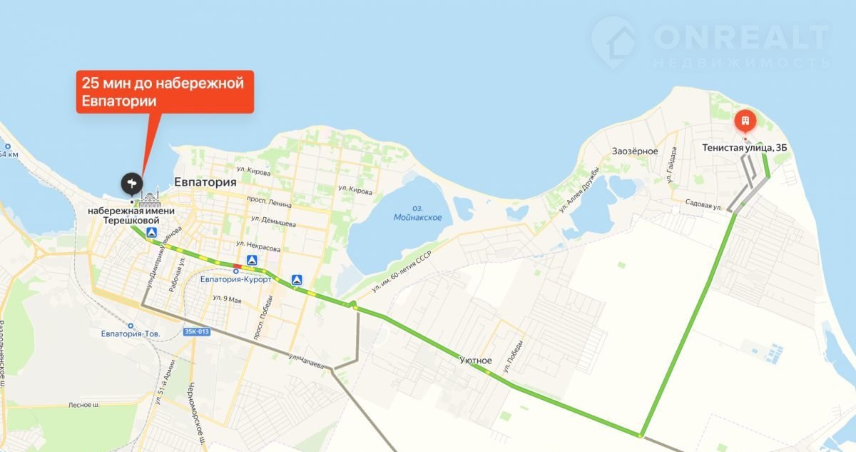 Вилла расположена в Заозёрном — курортной зоне Евпатории, известной своими песчаными пляжами и близостью к морю (Крымские Мальдивы). В 10 минутах езды находится центр города, а инфраструктура включает школы, детские сады, магазины и медицинские учреждения. Это место прекрасно подойдёт любителям как спокойного отдыха, так и активного образа жизни.