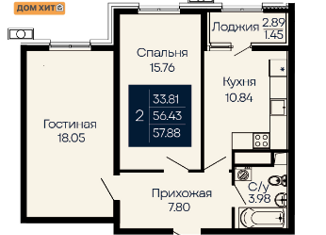 Общая площадь: 57.88 м2