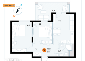 Общая площадь: 57.7 м2
