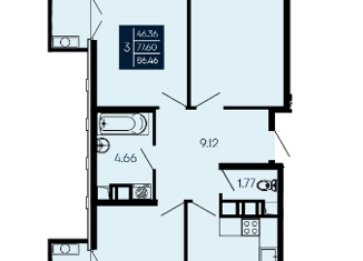 Общая площадь: 86.46 м2
