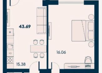 Продается двухкомнатная квартира, 43.7 м2