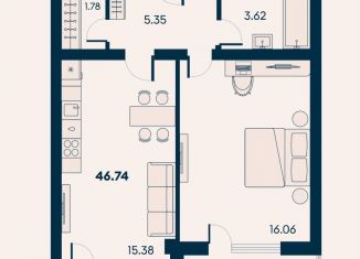 Двухкомнатная квартира на продажу, 46.7 м2