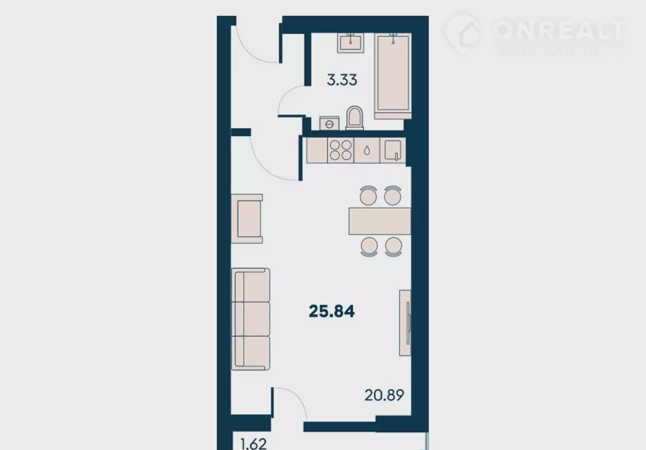 Общая площадь 25.8 м2