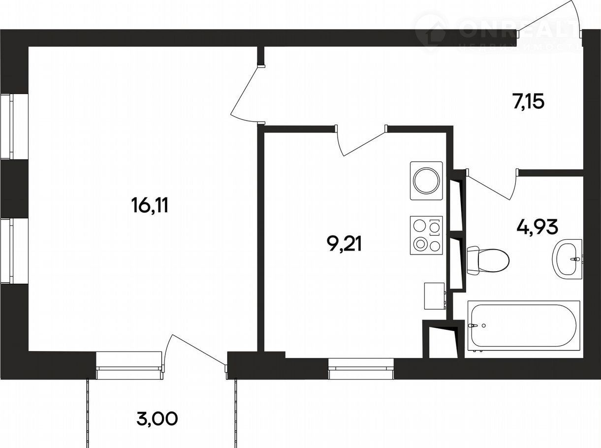 Балкон, лоджия 1 балкон