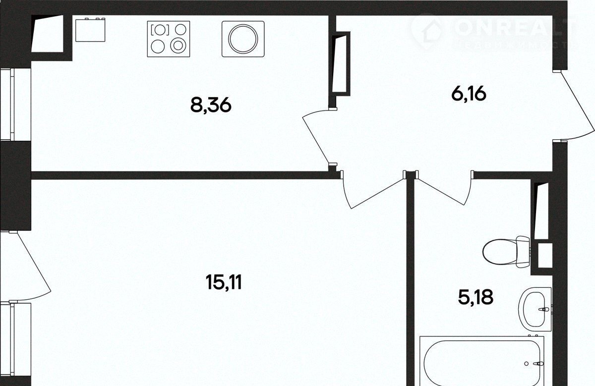 Общая площадь 34.8 м2