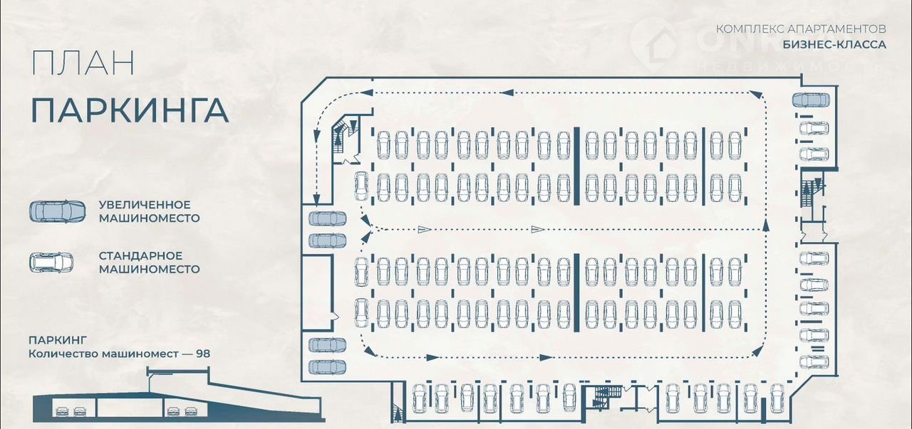 •    Подземный паркинг с тремя типами машиномест