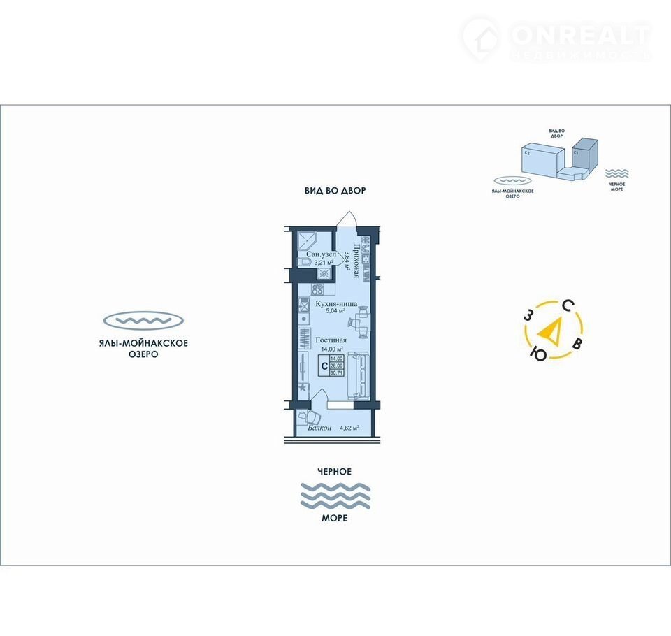5 мин до моpя пeшком, планировки от 30 кв.м.