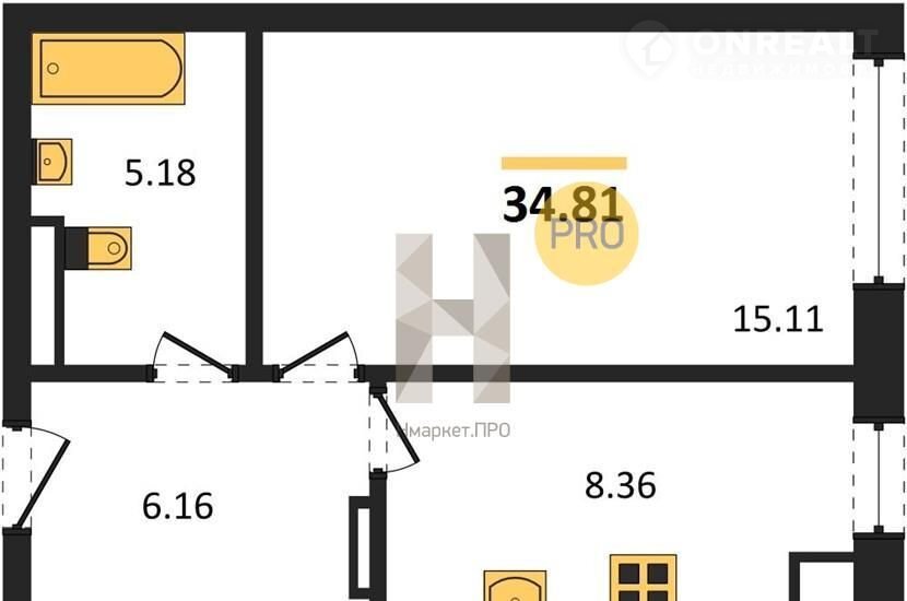 Общая площадь 34.8 м2