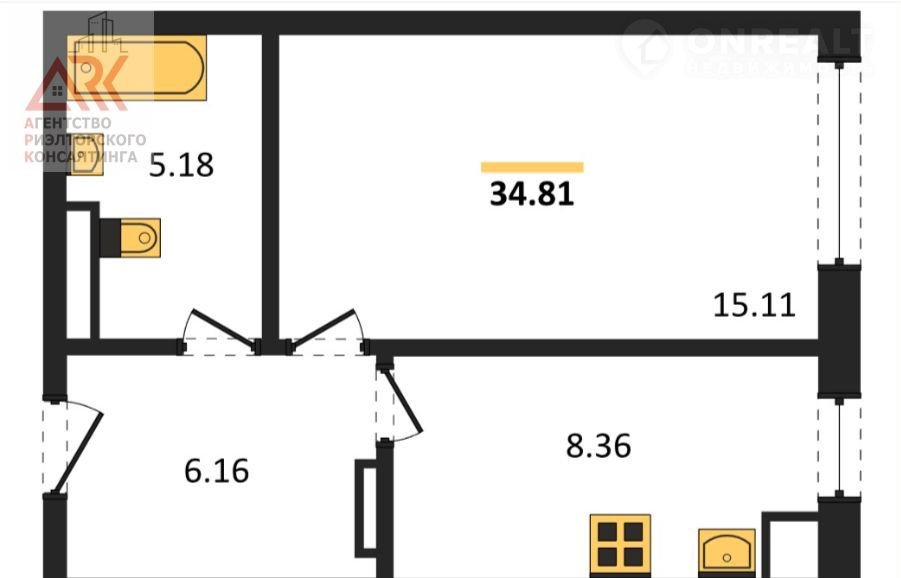 Общая площадь 34.8 м2