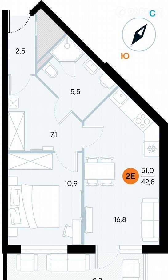 Общая площадь 49.9 м2