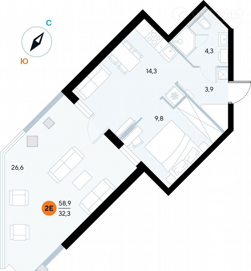 Общая площадь 58.7 м2