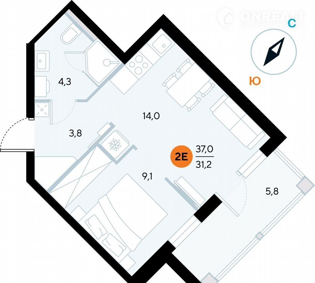 Общая площадь 36.7 м2