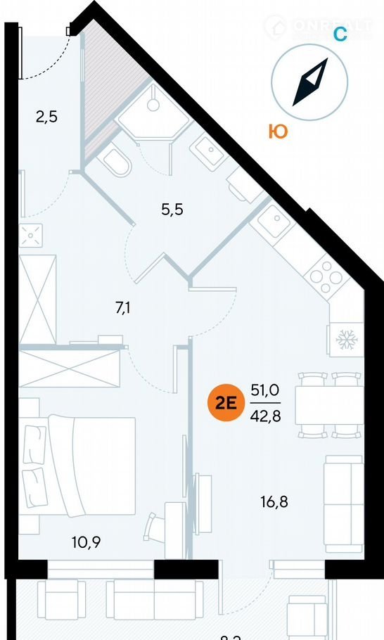 Общая площадь 50.5 м2