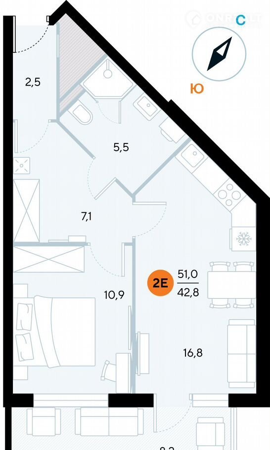 Общая площадь 50.8 м2
