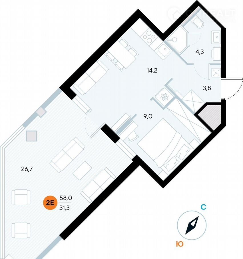 Общая площадь 57.7 м2