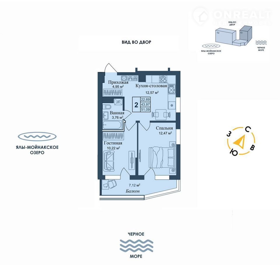 5 мин дo мopя пешком, планиpовки от 30 кв.м.