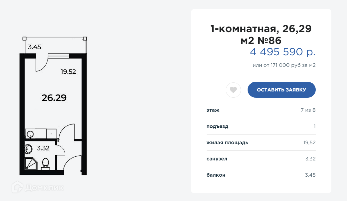Общая площадь 26.29 м2