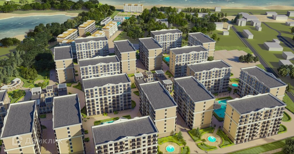 Апарт-комплекс располагается на первой линии с прекрасным видом на море в поселке Заозерное. Внутри проекта есть развитая инфраструктура и наличие необходимых условий для комфортной жизни.